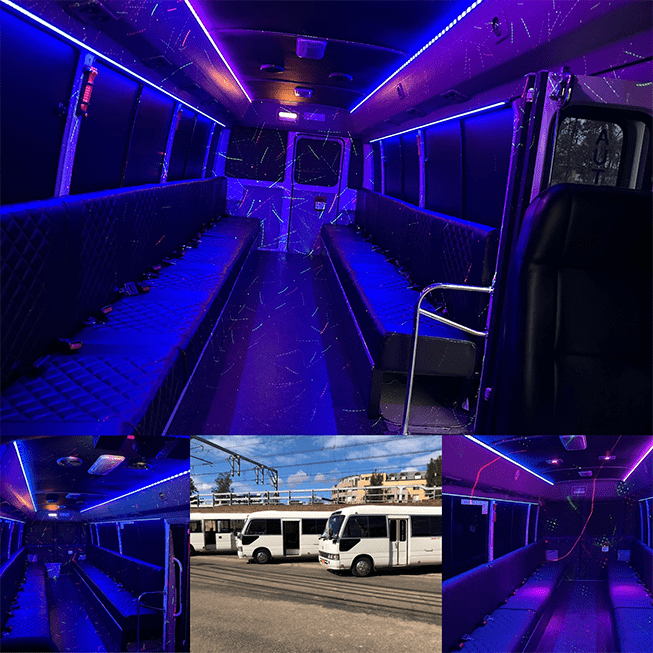 Our buses are equipped with an array of features designed to immerse you in a vibrant party atmosphere: